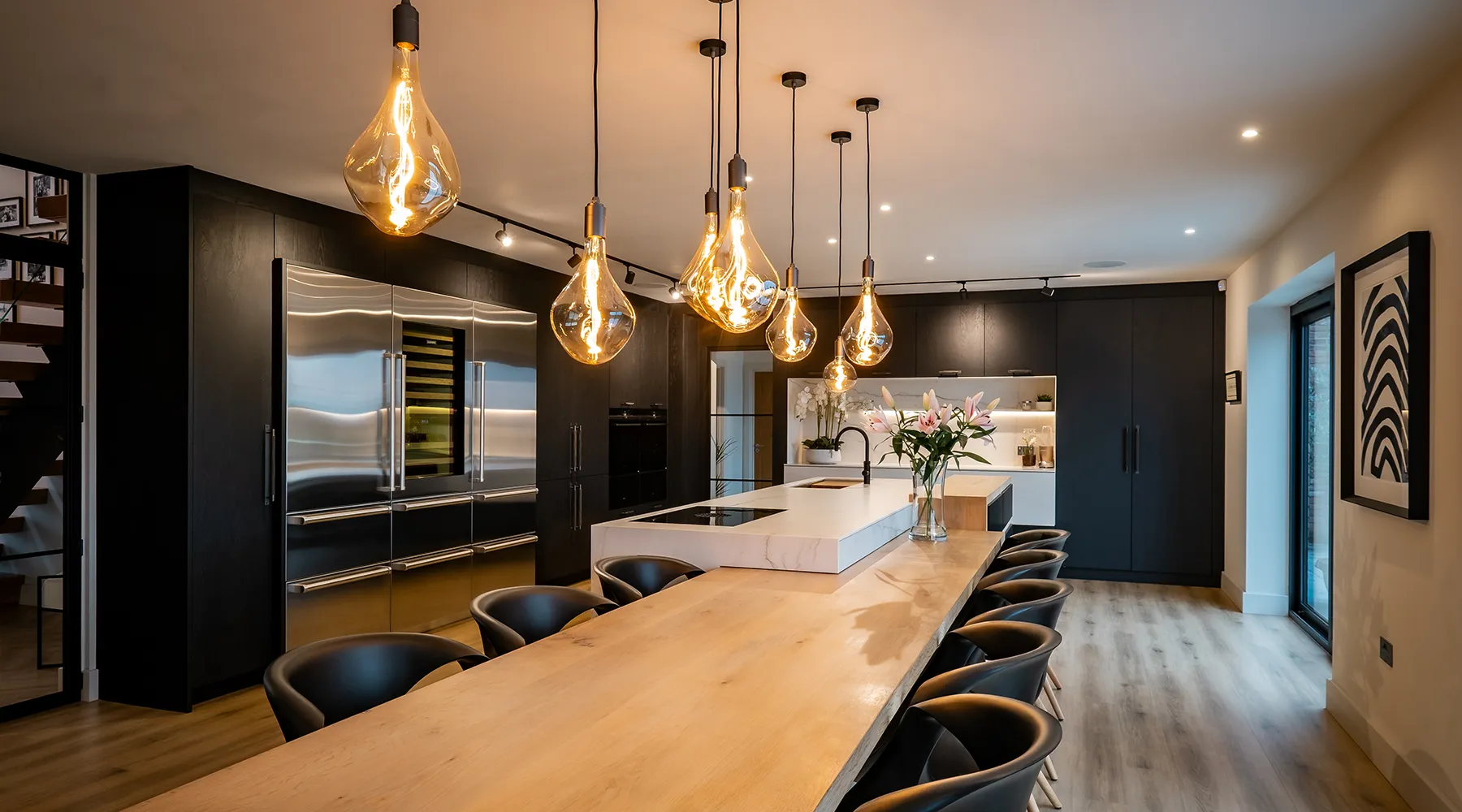 Throughout the home, lighting plays a quiet but powerful role. Carefully planned low-energy LED lighting highlights architectural features, complements the interiors and adapts easily to different times of day.